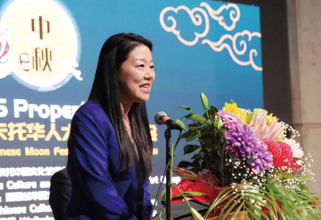 本次晚会冠名赞助CNS Properties市场部经理Ruby柳婕女士感谢主办单位的精心策划,并由衷地祝福祖国繁荣昌盛,也祝福大家月圆人圆满家园,心安人安四时平安。
